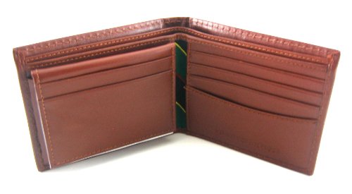 - Feature : Two bill compartments, 8 credit card pockets and removable leather-framed ID window / Bilfold wallet with hardware logo plaque, removable passcase, and striped tie-pattern lining