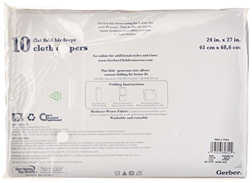 Gerber Birdseye Flatfold Cloth Diapers, White, 10 Count