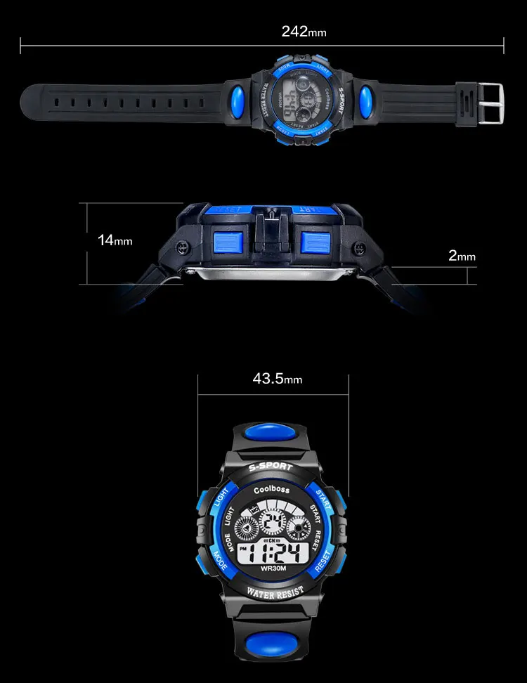 Feature:Water Resistant,LED display,Luminous,Stop Watch,Back Light,Complete Calendar,Shock Resistant,Auto Date,Week Display,Alarm,Repeater