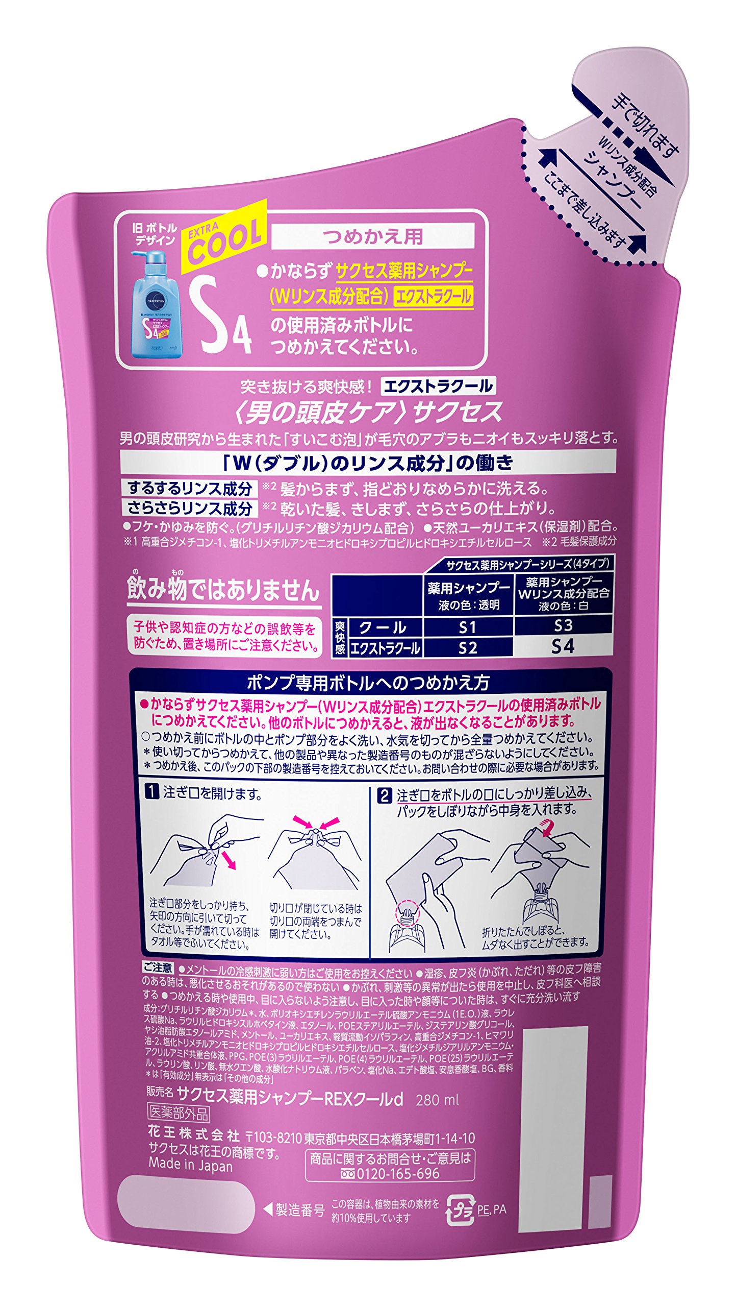 Success medicated shampoo W rinse ingredients Extra Cool Refill 280ml
