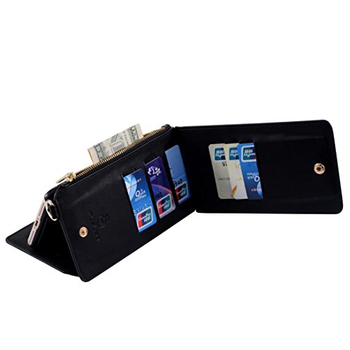 -. Binding : Apparel -. Brand : Fenleo -. Color : Black -. Department : womens -. EAN : 0646816162398 -. Feature : ☛ Size:6.34 x 3.38 x 1.38 inch. Material: Leather. / ☛ Safe & Secure Magnetic Wallet + Case Design: Get the best of 2 worlds with a full wallet that becomes a slim case whenever you want it to be. / ☛ Creative design: Including a hand strap and a long strap.Also can be a handbag or shoulder bag. Comply with flip stand, with 13 card slots + 1 photo slot + 1 zipper wallet. / ☛ Large capacity for cash, cards, passport and phone like iPhone 6/6s. / ☛ It is a good choice to take it as gift for you and your female friends. -. ProductGroup : Apparel -. ProductTypeName : ACCESSORY -. Size : 6.34 x 3.38 x 1.38 inch -. Title : Fenleo Multi-functional Leather Zipper Clutch Wallet For Cash, Cards and iPhone 6/6s (Black) -. UPC : 646816162398