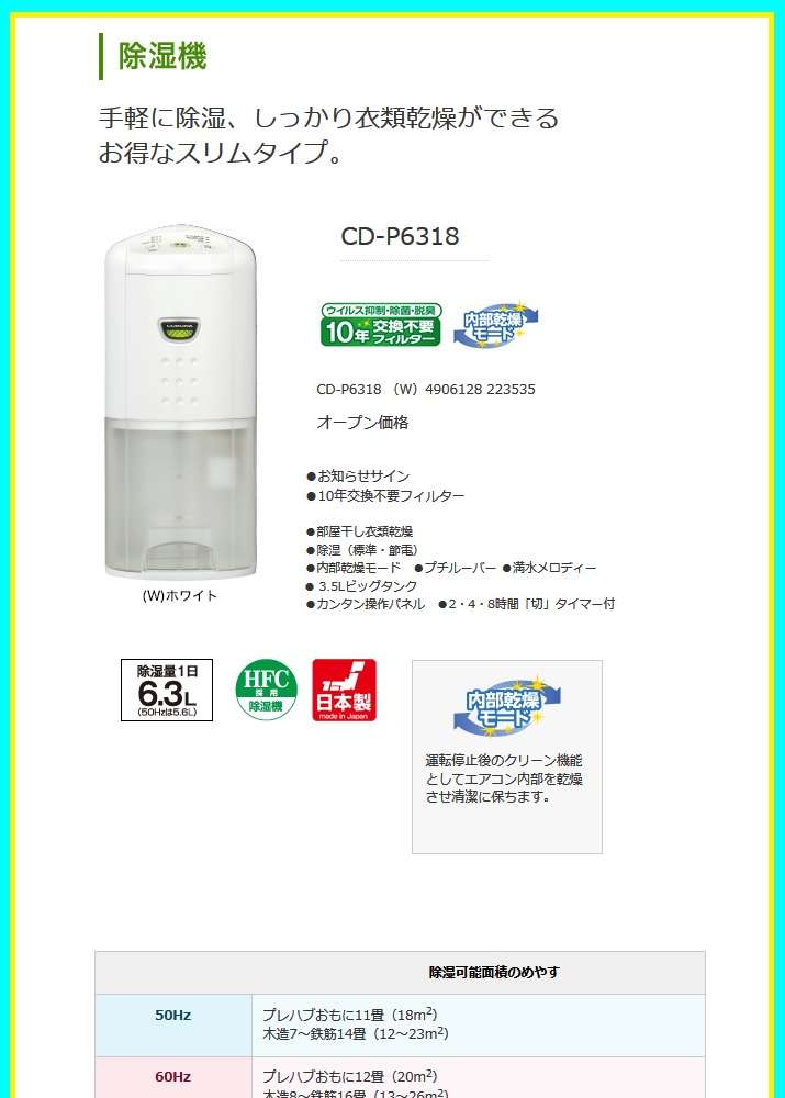 ●手軽に除湿、しっかり衣類乾燥ができるお得なスリムタイプ