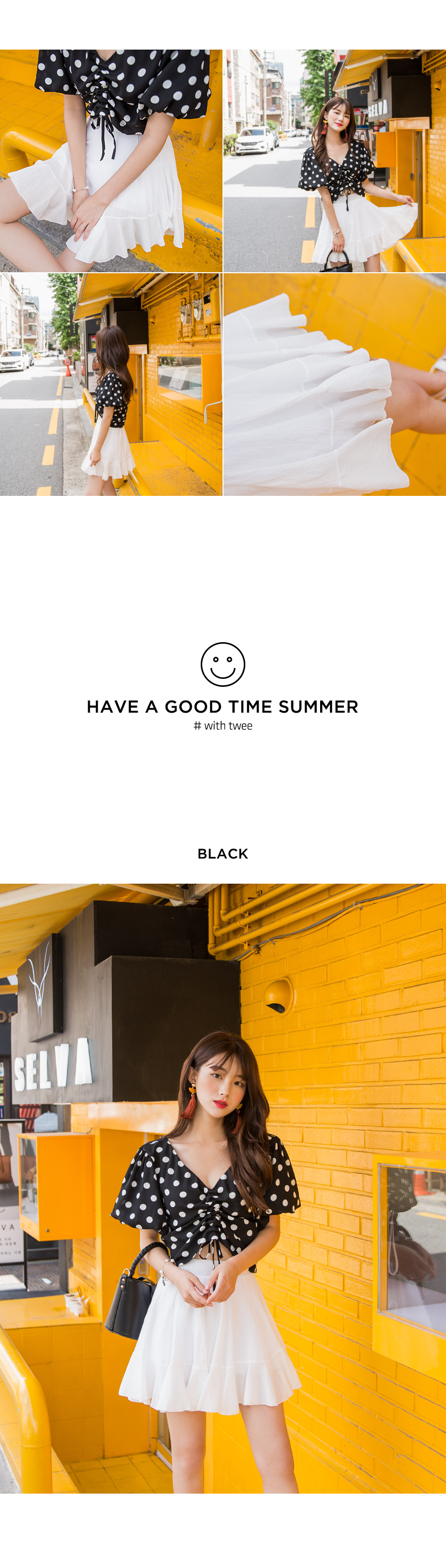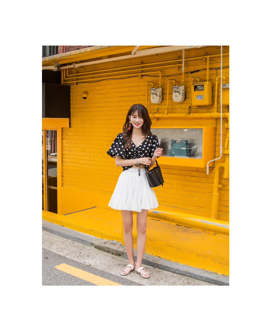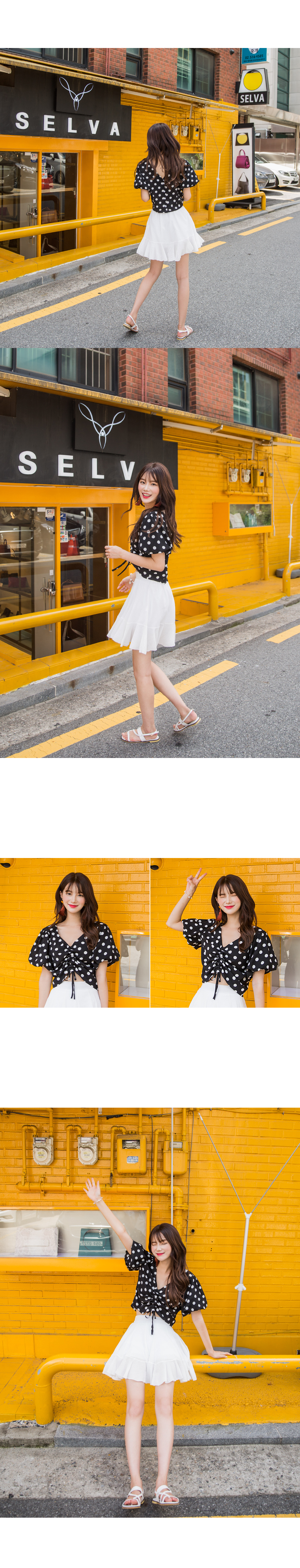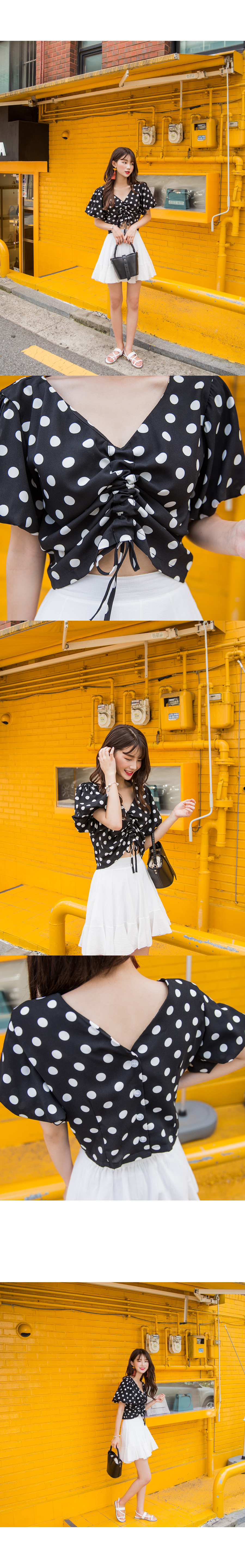 MD COMMENT캐주얼하면서도 포인트주기 좋은도트 블라우스입니다 전체적으로 여유있는 실루엣으로 편안하게 착용하실 수 있구요 셔링 디테일로 조절을 할 수 있어크롭 기장감으로 하이웨스트 하의와 함께 매치하여 걸리시하면서도 트렌디한 무드를 즐기실 수 있어요 퍼프소매로 여성스러운 느낌과 V넥 디자인으로 답답하지 않아 기본 아이템과 부담없이 매치하기 좋은 아이템이에요!