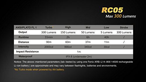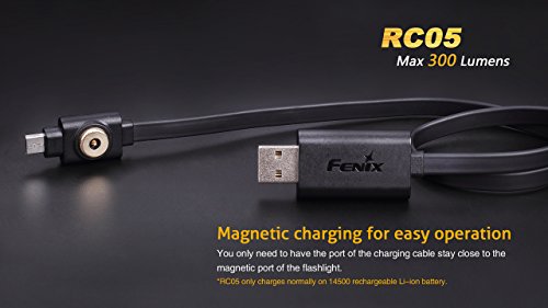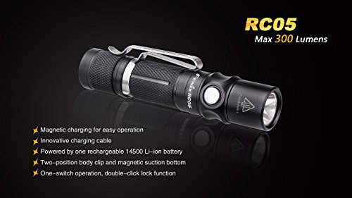 Fenix RC05 300 Lumen USB rechargeable CREE LED Flashlight with Fenix 14500 Li-ion battery , and EdisonBright BBX4 battery carry case bundle