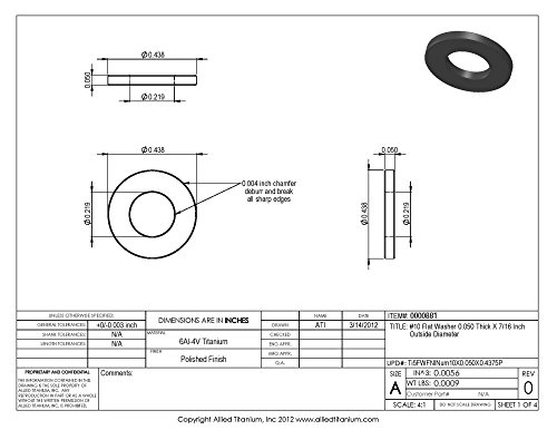Allied Titanium 0000881, (Pack of 25) #10 Titanium Flat Washer 0.050 Thick X 7/16 Inch OD, Grade 5 (Ti-6Al-4V)
