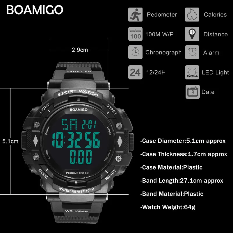 Feature:Complete Calendar,Shock Resistant,Stop Watch,LED display,Auto Date,Week Display,Water Resistant,Chronograph,Swim,Alarm,Perpetual Calendar