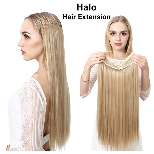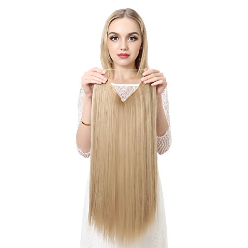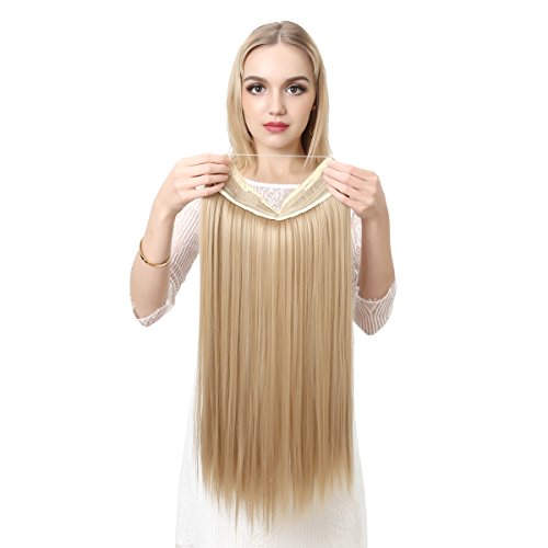 SARLA 22" Straight Invisible Wire Flip On Hair Extension Synthetic Heat Resistant Fiber Halo Hair Extension M02 (4# Black Brown)
