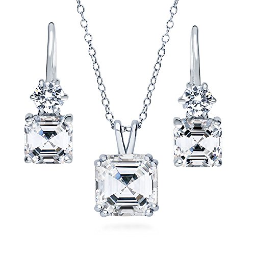 -. Title : BERRICLE Sterling Silver Asscher Cubic Zirconia CZ Solitaire Bridesmaids Necklace and Earrings Set