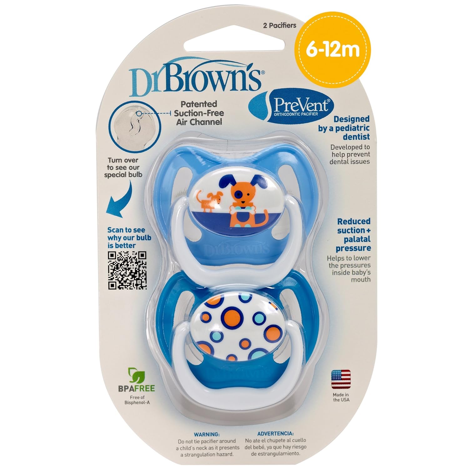 [AUTHENTIC] Dr. Browns PreVent Design Pacifier Baby / Infant, Boys, Girls Patented suction free air channel that helps reduce suction and palatal pressure