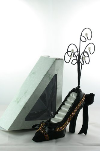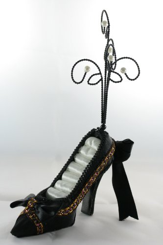 -. Title : Beautiful Black Satin Ribbon High Heel Shoe Ring Hold Jewelry Stand