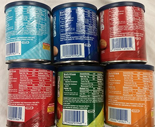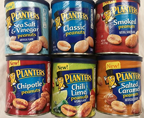 Assorted Planters Peanuts Variety Pack & Gift Box. 6- 6oz Cans of Healthy Peanuts, 6 Flavors