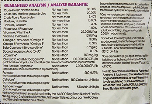 -. Feature : UNIQUE DIGESTIVE HEALTH SUPPORT: Formulated with a unique digestive health support system, focused around prebiotics, probiotics, natural fibers, digestive enzymes & botanicals / SMALL & MINI BREED PUPPY FORMULA: A smaller kibble, everyday complete & balanced diet made with premium ingredients like anchovy, sardines & chicken, plus DHA to help with the cognitive development of puppies. / ALL NATURAL: Contains only premium, all natural ingredients with no meat by-products, wheat, wheat-gluten or artificial colors, flavors or fillers. / MADE IN USA: Backed by the Holistic Select Guarantee and proudly made only in the USA. / SUBSCRIBE & SAVE: Hassle-free way to save 5% and always keep your pantry stocked.