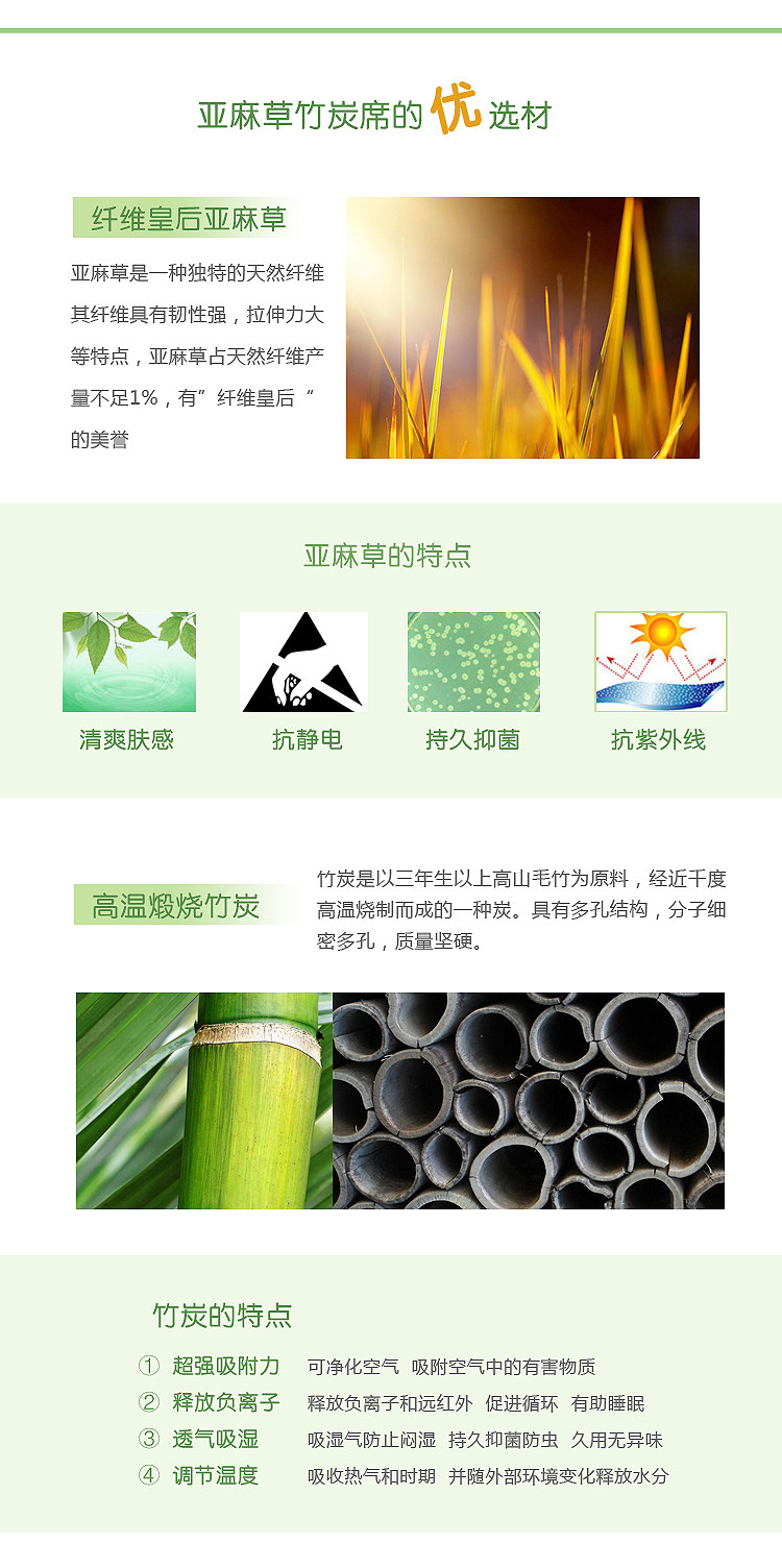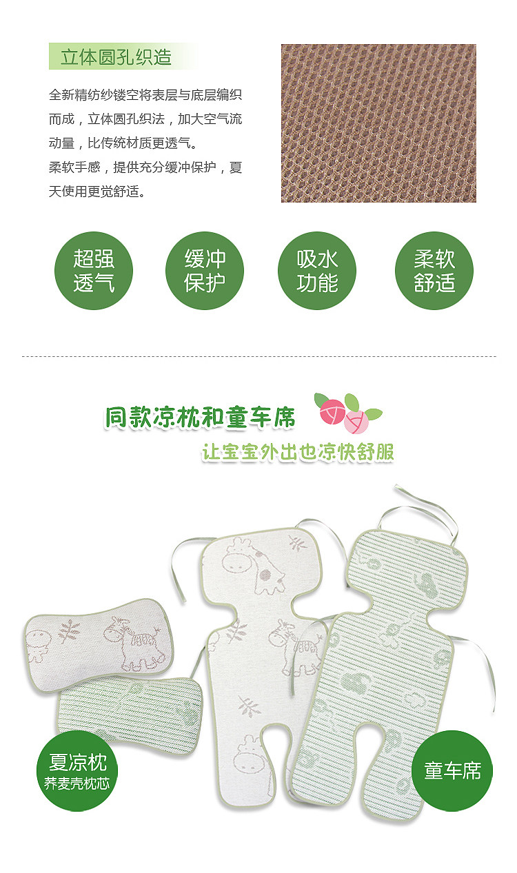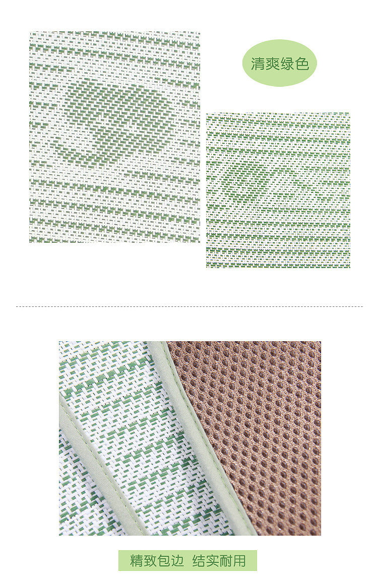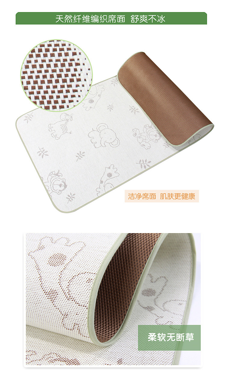 ???????????????bobkids/鲍勃骑士亚麻草竹炭席,产品表层由天然植物纤维编织而成,触感细腻,散发淡淡草香,亚麻纤维使肤感舒爽适宜。中层添加竹炭,抑菌防螨,透气吸汗,底层采用网孔织造,加大缓冲力和柔软度,空气流通更顺畅,宝宝用起来更觉凉爽舒适。夏季气温高,出汗多,实用亚麻草竹炭席,增加凉爽读,还可避免闷湿,降低痱子的产生。