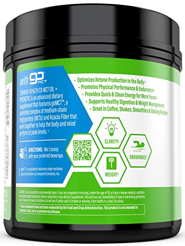 -. Feature : A HIGH POWERED MCT & PREBIOTIC BLEND - Zenwise Health MCT Oil + Prebiotic is an dietary supplement featuring goMCTTM, a refined medium-chain triglyceride that converts healthy fats to ketone bodies to power up the mind and body for more energy, focus, and physical performance. Enhanced with Acacia Fiber (also known as Gum Arabic) for Prebiotic support, this extra strength combination of ingredients also gives the body the ultimate edge with digestive function. / ACACIA FIBER FOR PREBIOTICS SUPPORT - This MCT Oil + Prebiotic Powder contains Acacia Fiber, which is a premium Prebiotic that can help lower body fat, support the heart, and bolster beneficial bacteria to promote gut health and optimal digestive function. For adults that are on ketone diets for physical wellness, fiber helps produce short-chain fatty acids (SCFA), which are ketogenic acetate, butyrate, and propionate. / MAXIMUM ENERGY & FOCUS - The powdered medium chain triglycerides in this unflavored extra-strength formula promote the production of ketones in the brain which supplements the mind and body with a lightning quick boost of clean and natural energy. This advanced brain boosting formula can help you achieve perfect mental clarity and alertness with no jitters, headaches or sugar crashes. / WEIGHT LOSS & DIGESTIVE SUPPORT - If your goal is to burn fat and trim down, this MCT and Prebiotic complex has been shown to be an excellent fat burner solution and appetite suppressant for men and women looking for a metabolism boost. This powerful mix can also support healthy digestion to keep gas and stomach bloating at bay, and blends easily with coffee, shakes, smoothies, and food recipes to help you on your quest to feel your best all day long. / FUEL FOR WORKOUTS & MENTAL FOCUS - Through extensive research and fine-tuning, the ingredients in this MCT + Prebiotic powder supplement are great to improve performance for any pre or post workout regimen, and ideal for anyone active in high octane sports and physical fitness. It's also safe for anyone on a vegan, paleo or gluten free diet.