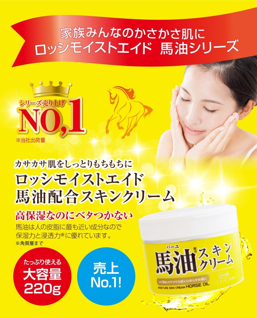 동물성 지질 유래 성분으로 사람의 피부에 잘 익숙 지속 형의 수분 피막을 만드는 "말 기름"배합의 전신 스킨 크림.