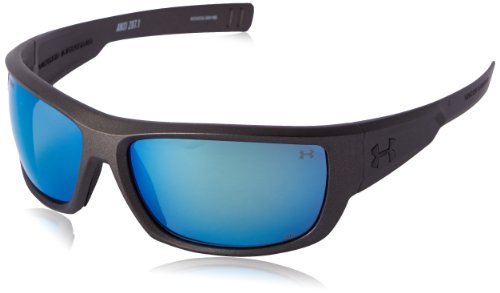Under Armour Rumble Satin Carbon Frame, with Black Rubber and Storm (ANSI) Gray Polarized Green Mirror Lens