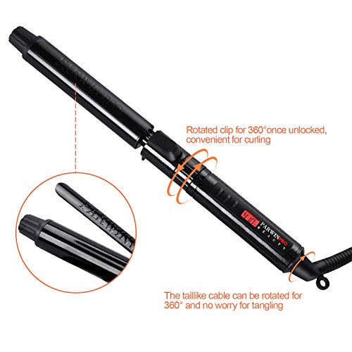 PARWIN PRO Diamond Tourmaline Ceramic Curler Iron, Manual Rotating barrel, Digital LCD Display, Auto Shut Off, Temperature Control, with Clamp...
