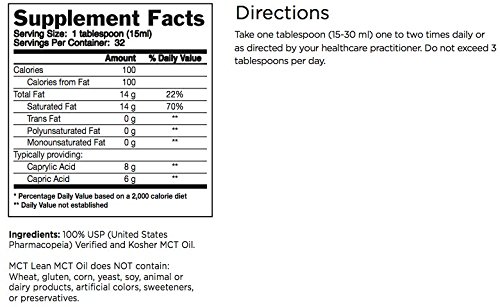 -. Title : MCT Lean MCT Oil, 16 Oz. - 100% USP Verified (Pharmaceutical Grade), Certified Kosher