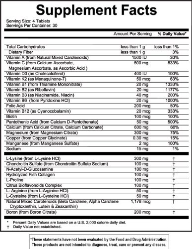 -. Feature : Scientifically formulated to help retain bone density.* / Key Synergy Nutrients: / Vitamin C: Supports the production of collagen, a basic functional component of the bone essential for proper disposition of minerals.* / Vitamin D: Enhances the absorption of calcium from the digestive system, kidneys, parathyroid glands and maintains the optimum balance of calcium and other minerals for building bones. Moreover, vitamin D also has direct action on the osteoblastic cells which promote new bone formation.* / Copper: In addition to its antioxidant properties, copper increases the effectiveness of vitamin D and calcium, thereby improving the structure and strength of human bones. As a cofactor in collagen synthesis, copper is essential for the formation of bones and other connective tissue.* / Calcium, Magnesium, Boron: Required for proper mineralization of the bones, their density and strength. Boron also increases the absorption of calcium from the digestive system and the metabolism of calcium, magnesium, phosphorus and copper in the body.* / Collagen hydrolysate: Increases osteoblast activity, contributes to bone remodeling and supports the structure and strength of bones. Collagen is the necessary ingredient needed to maintain joint cartilage.* / N-acetyl-D-Glucosamine: Needed for the optimum production of glycosaminoglycans key components of connective tissue. N-acetyl-D-Glucosamine also helps in cartilage and synovial fluid formation.* / Chondroitin sulfate: Needed to ensure the integrity and function of the connective tissue required for building healthy bones and joints.* / All proceeds to to the non-profit Dr. Rath Humanities Foundation / No GMO's, MSG, Yeast, Dairy, Wheat, Gluten, BSE, Peanuts, Heavy Metals, Trans-fats, Irradiation, Pesticides, Microbial Contamination / Allergen-Free