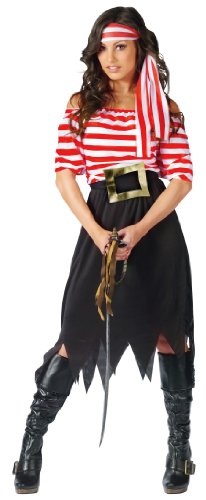 -. Brand : Fun World -. ClothingSize : One Size Fits Most -. Color : Black and Red -. Department : womens -. Feature : Boots and sword not included. -. Label : Fun World -. Manufacturer : Fun World -. PackageQuantity : 1 -. ProductGroup : Apparel -. ProductTypeName : ADULT_COSTUME -. Publisher : Fun World -. Size : One Size Fits Most -. Studio : Fun World -. Title : Women's Pirate Maiden Costume
