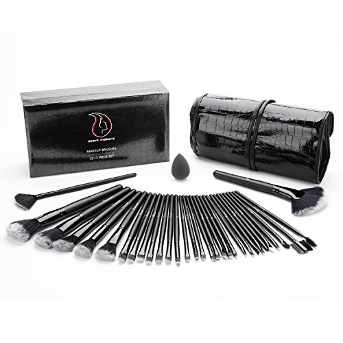 Makeup Brushes ,Start Makers 32+1 Pieces Professional Makeup Brush Set with Beauty Blender and Gift Box (Black)