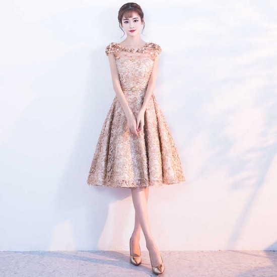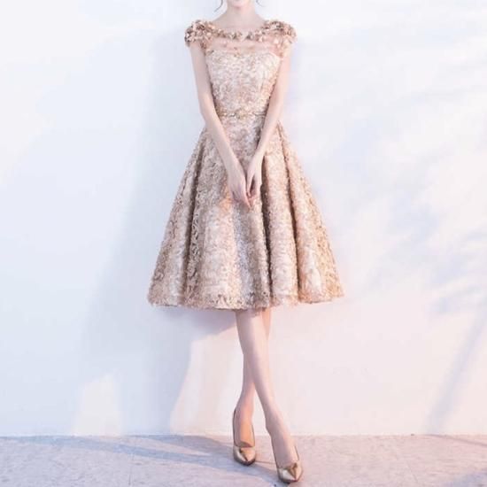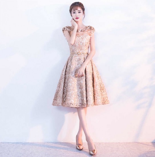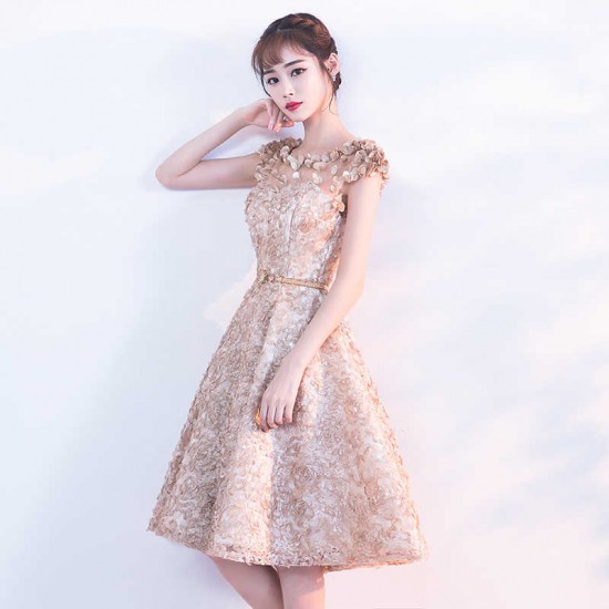 パーティードレス ひざ丈 ワンピース フレンチスリーブ フラワーモチーフ 花びら ゴージャス エレガント 大人 上品 可愛い お呼ばれ drgz2163