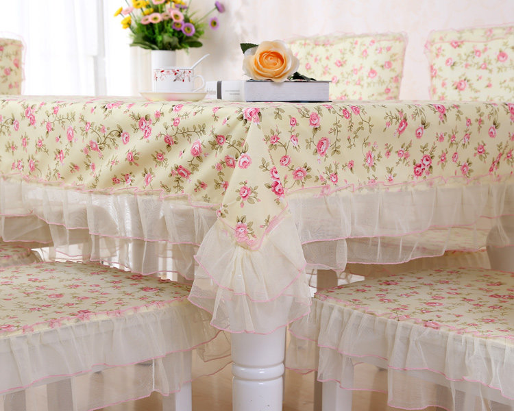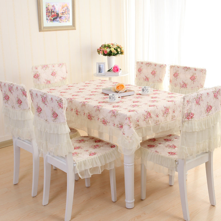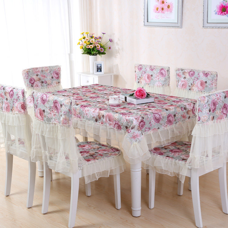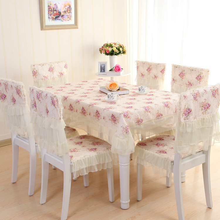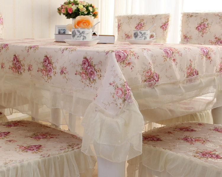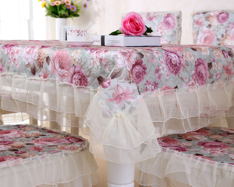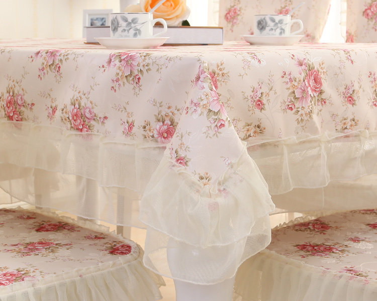 Product Descriptional Beautiful Rose Design Table Cloth Set Chair Cover Cusion Tablecloth Polyester Cotton Flower Print Table Cover