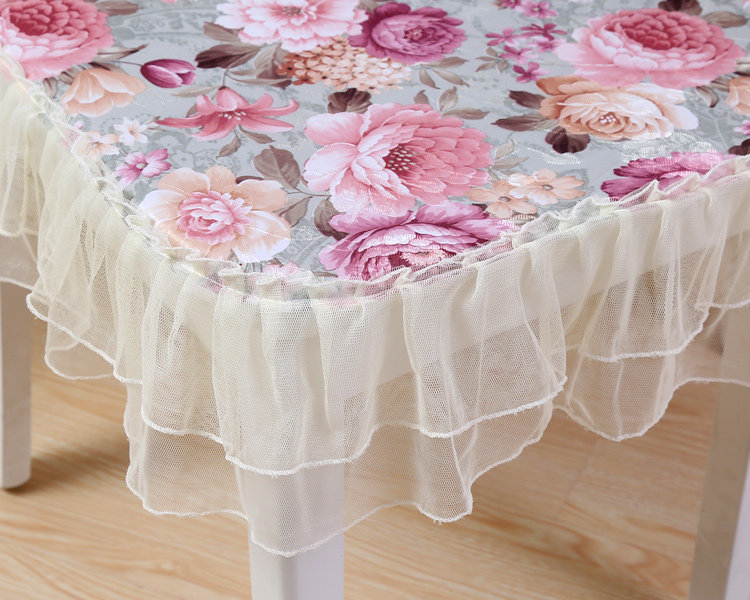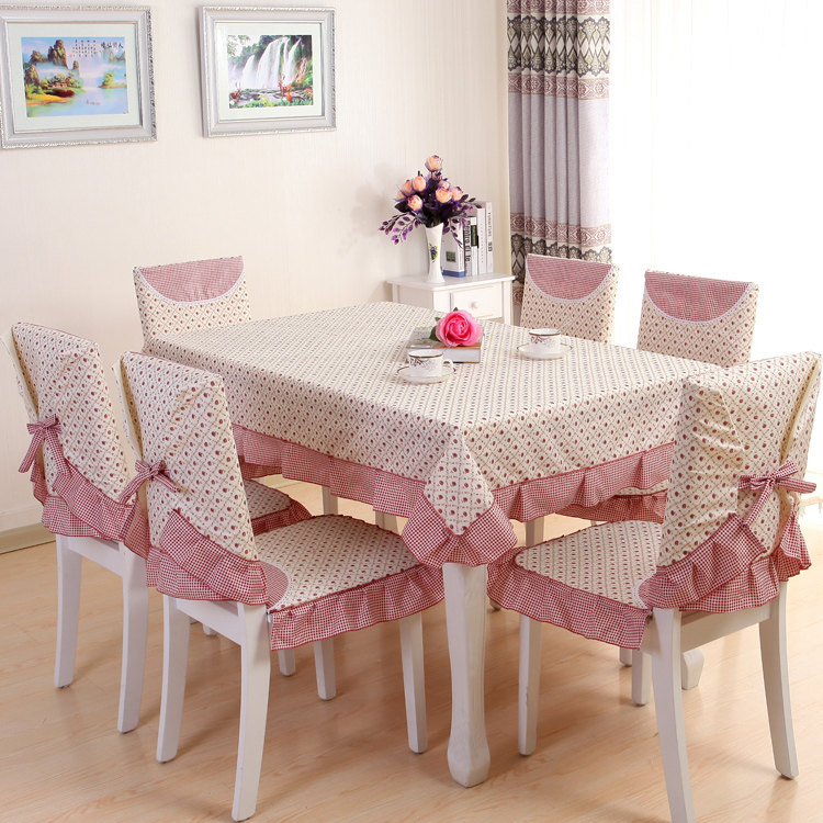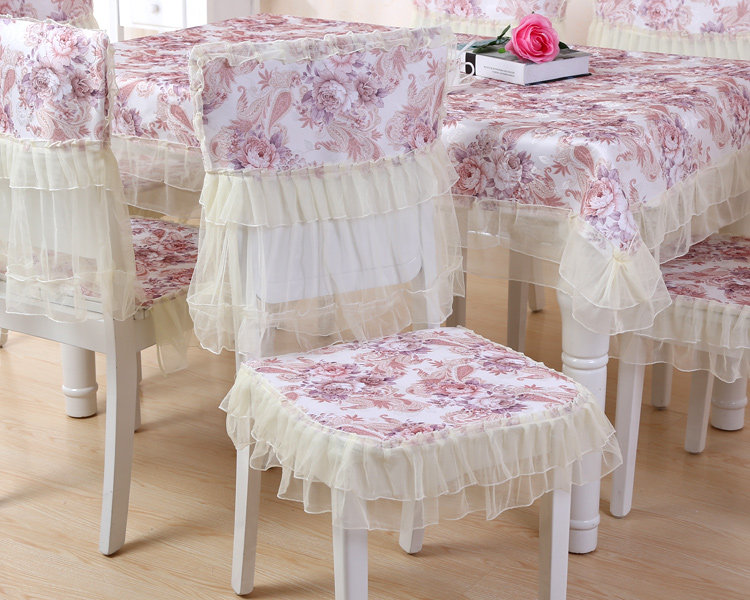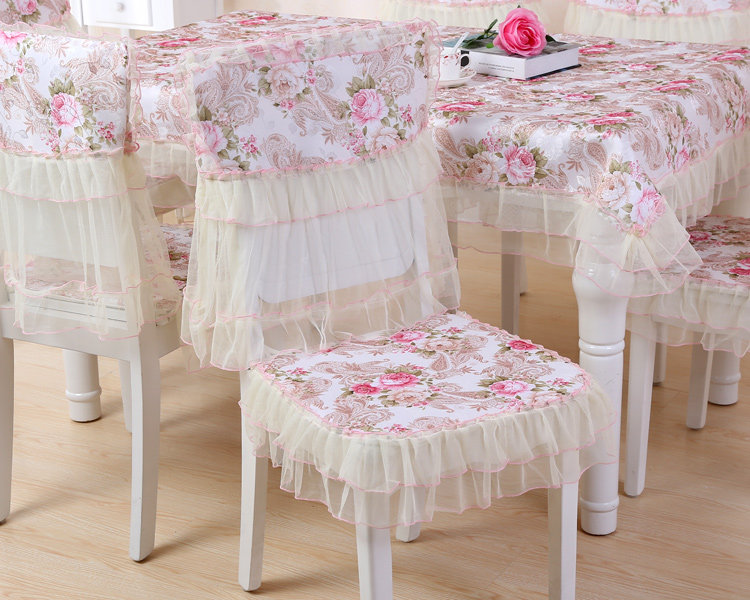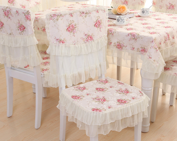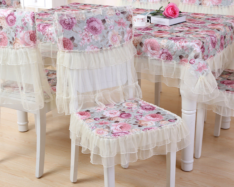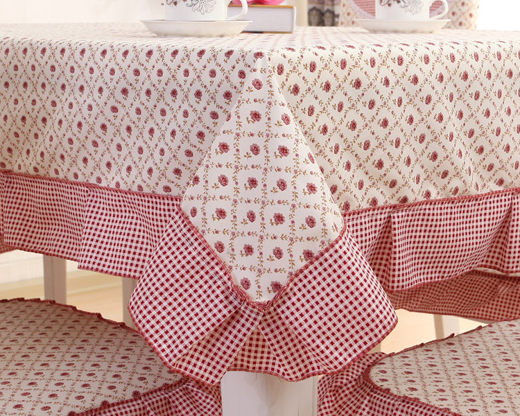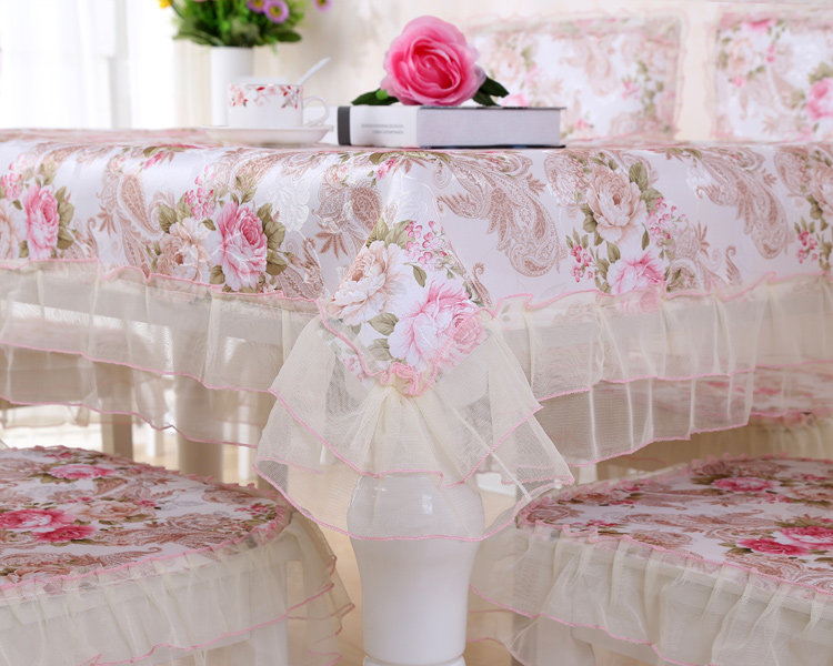 Product Descriptional Beautiful Rose Design Table Cloth Set Chair Cover Cusion Tablecloth Polyester Cotton Flower Print Table Cover