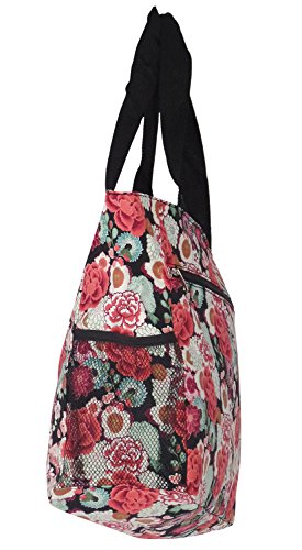 -. Brand : California -. Department : womens -. Feature : In a fun designer P.R.Ints, it makes an ideal bag that is great for overnight slumber parties! / Use it as carry on lage for the woman on the go / Makes a great school bag and can handle text books / This light weight weekender bag is lined / Features a top zipper closure, two exterior side pockets and exterior zip pocket -. Model : 3015 -. PackageQuantity : 1 -. ProductGroup : Apparel -. ProductTypeName : LAGE -. Size : Large -. Title : Large Multi - Pocket Fashion Zipper Top Organizing Beach Bag Tote -13"x13"x6.5"