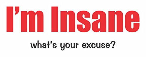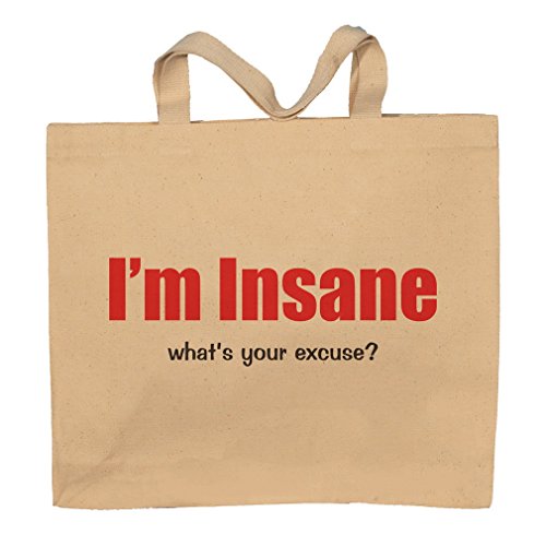 Binding : Apparel Product Description I'm Insane what's your excuse? . A Fun way to show how you feel with a totebag. The Design/Saying is printed on the front of this canvas tote bag. We use the newest best technology to print the design with great inks that are cured into the product. This new high tech way of producing garments is very fade resistant. WE DO NOT USE TRANSFERS. It is great, since you dont have that thick transfer feeling. The feel is very smooth and comfortable. 0