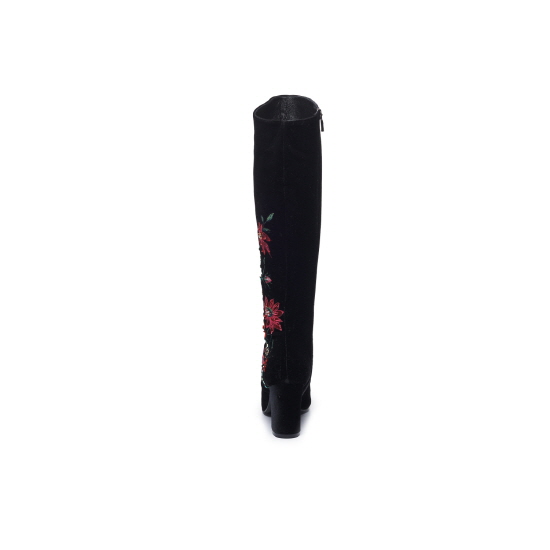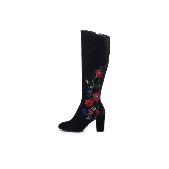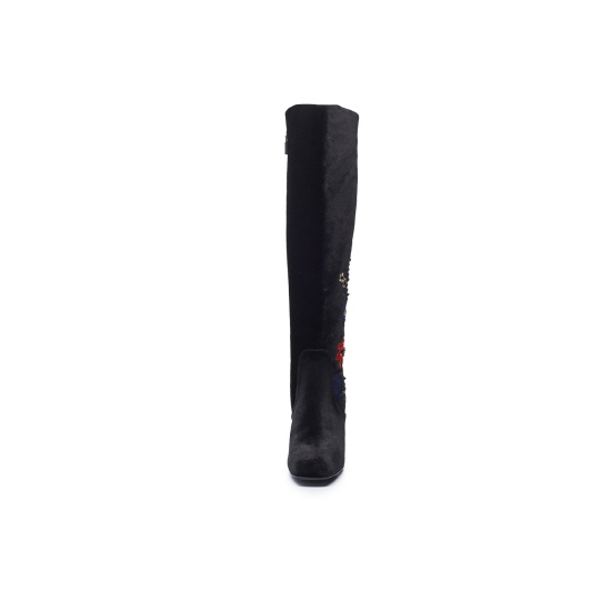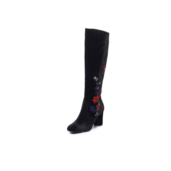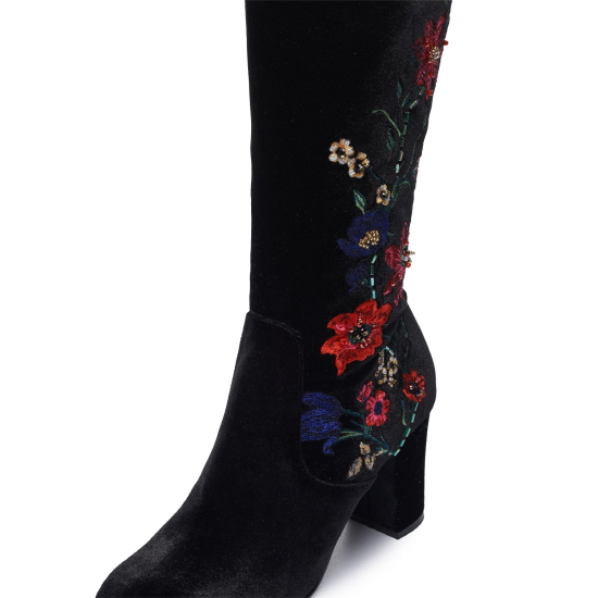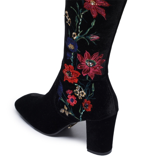 * 트렌디한 벨벳 소재&감각적인 플라워 비딩 자수가 돋보이는 스퀘어 토 롱 부츠