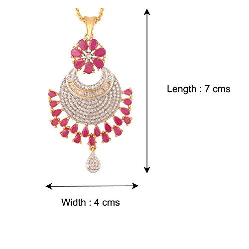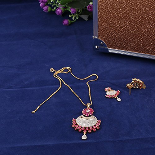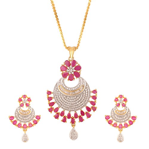 -. Feature : Swasti Jewels Sparkling Zircon Pendant Sets a perfect gift for Every Princess . Ideal Gift for Loved ones. / Style: A gorgeous beautiful american diamond traditional Pendant Set with matching Earrings. Chain is a part of the Product. / Colors: Gold with American Diamonds and Rhodium Plated. No of Items : 1 Pendant with chain + 1 Pair of Earrings / Styling tip: Wear with an ethnic outfit for any occasion. This traditional set will complement any Indian attire. Ideal Gift for Loved ones, Wife, Mother, Sister. Excellent gift for Birthday, Anniversary, Festivals and Celebrations. / Stone Creation : Simulated ; Stones: Cubic Zirconia & American Diamonds