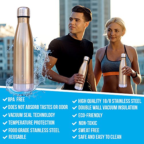 - Ultra-Convenience water bottle is echo friendly, light weight (11.2oz) and its double wall will keep your drink ice cold while the stainless steel will ensure it will never sweat.