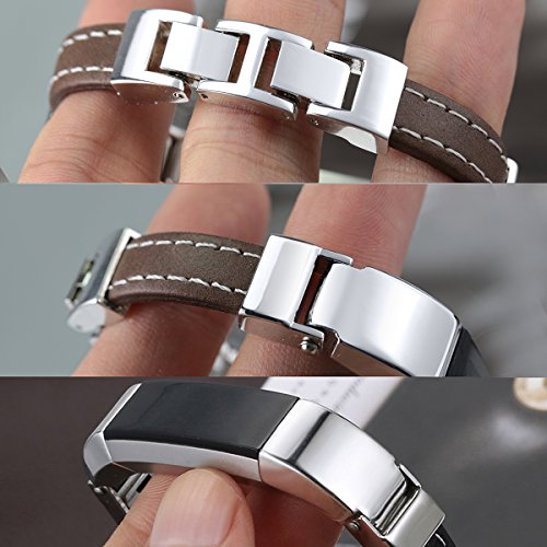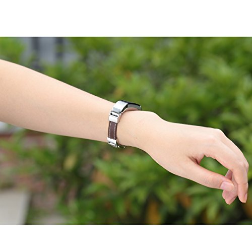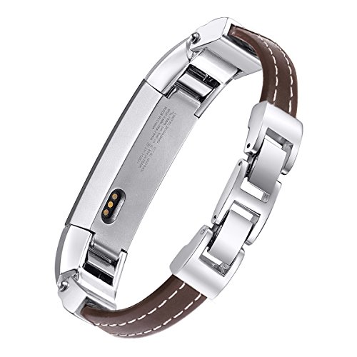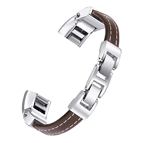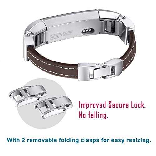 For Fitbit Alta and Alta HR Bands, bayite Leather Bands Adjustable Metal Buckle Leather Wristband Small Large Black