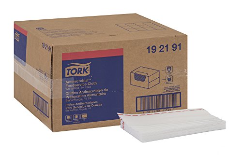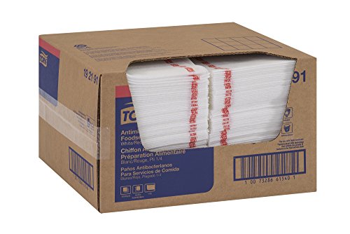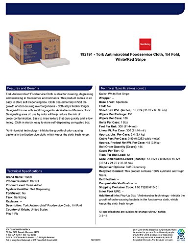 -. Title : Tork 192191 Antimicrobial Foodservice Cloth, 1/4 Fold, 13" Width x 24" Length, White/Red Stripe (Case of 1 Box, 150 Cloths per Box)