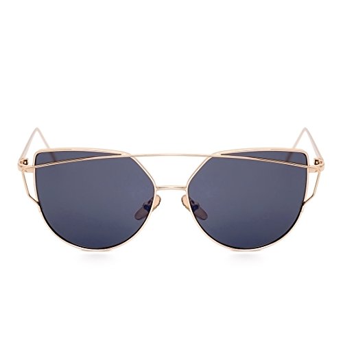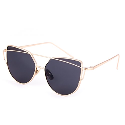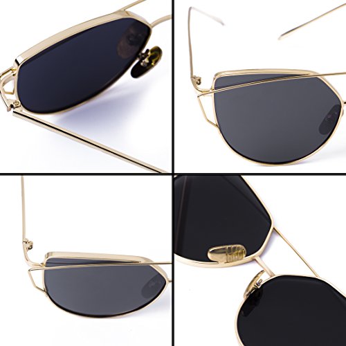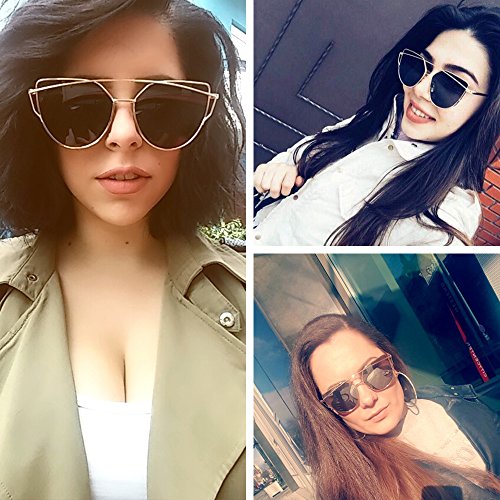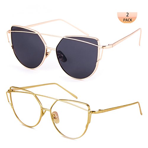 WISH CLUB Cat Eye Women Sunglasses 2 Pack Mirrored Flat Lenses Metal UV 400 Glasses