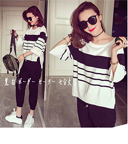 -. Feature : 『今季 大人気 ゆったりめ ワイド トップス 黒 白 ボーダー セーター 七分丈 上下 ボトムス セットアップ が新登場!』【 素材 】・トップス:綿 ・ボトムス:ポリエステル 【 サイズ 】 ・トップス:フリー ・ボトムス:M L XL 【 カラー : 1色展開】 ホワイト ( 白色 ) ブラック( 黒色 ) ボーダー柄 / ◆【 ボトムス にはお手持ちの 】 デニム 短パン ジーンズ ショートパンツ スキニー レギンス クロップドパンツ ワイドパンツ サブリナパンツ チノパン カプリパンツ ワイドパンツ フレアー シフォン ガウチョ スカンツと合わせてもGood! / ◆【 スカート にはお手持ちの】 フロングスカート ミニスカート シフォンスカート フレアースカート ワンピース 等、多彩に合わせられ自由自在のコーディネート コーデが楽しめます。 / ◆人気のデザイン に定番カラー!キュート ガーリー フェミニンな印象。トップスは フリーサイズ で 伸縮性 もあり ゆったり 着用。パンツは伸縮無く サラッとした素材 質感。ウエストがゴムですので、楽な着心地です。      ◆ 普段着 部屋着 にはもちろん。通勤 通学 ビジネス オフィフ お出かけ 旅行 デート 女子会 と 多彩な シーンに大活躍!お泊りの際の おしゃれ 寝間着 パジャマ ルームインナー スウェット としても。 / ◆【 アウター にはお手持ちの】 ロング ショート コート ジャケット カーディガン パーカー と組み合わせて着こなし自在。  【 インナー には】 ランニングシャツ 長袖 シャツ タンクトップ アンダーウェア スポーツインナー スポーツブラ ノースリーブ キャミソール シースルー ベアトップ チューブトップ ブラ ノンワイヤー 下着 と組み合わせて、日常ライフにご着用下さい。