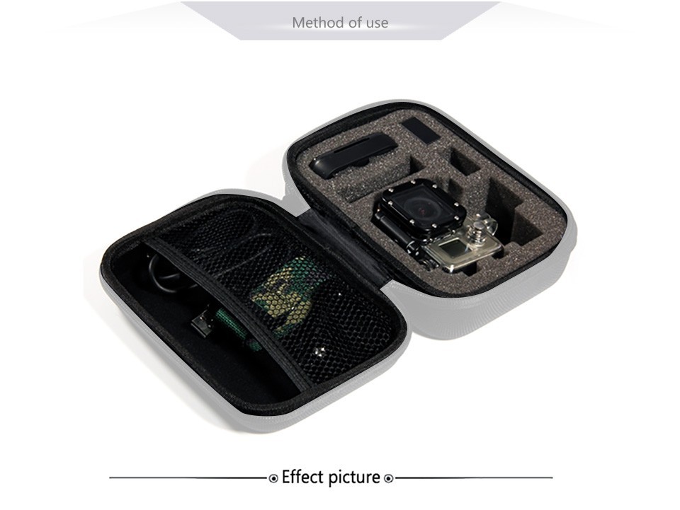 The mounts , strap belt , mount adapter , float , tripod , monopod , roll bar mount and knob for Gopro Camera Hero HD accessories can be packed in it.