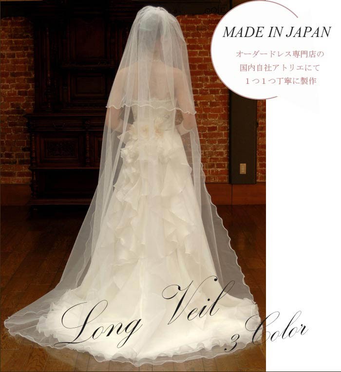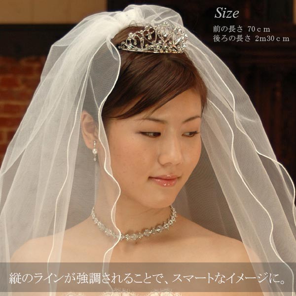 POINT → ウェディングでは、縦のラインが強調されることによりスマートなイメージで着用いただけます!! ウェディングドレスのデザインを選ぶことなく、合わせやすいベール(ヴェール)です。