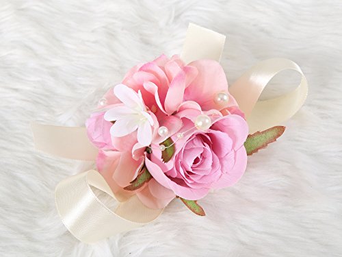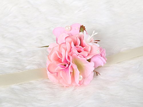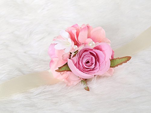 Bridesmaid Wedding Wrist Corsage Rose Flower Decor Ceremony Party (Pastel Pink)