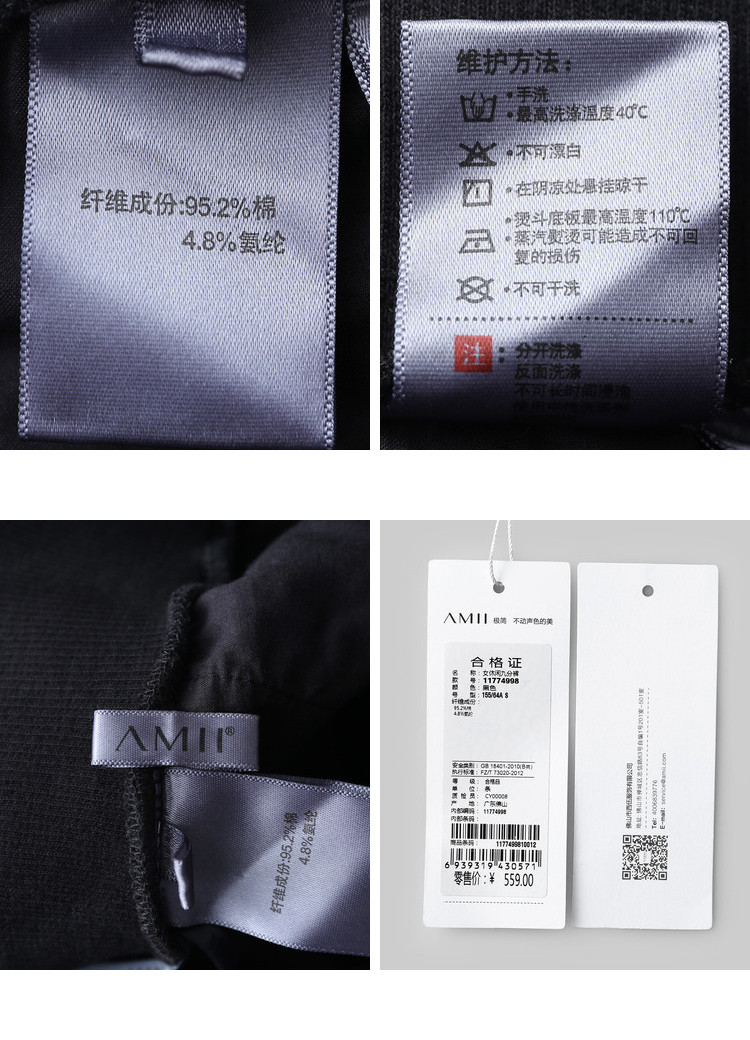 | 洗涤标准: | 不可漂白40℃以下手洗悬挂晾干不可浸泡不可干洗110℃以下垫布熨烫 |