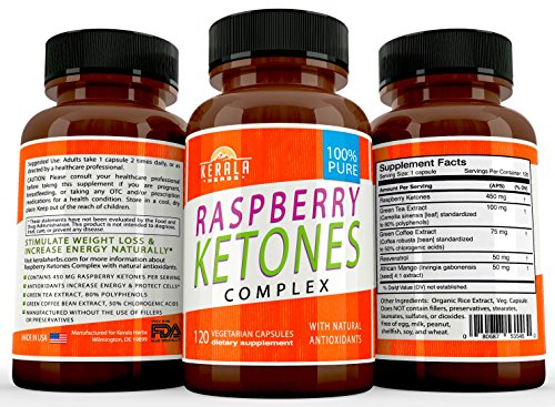 Kerala Herbs 100% PURE Raspberry Ketones Complex Plus Green Coffee, Green Tea Extracts, Resveratrol, African Mango and Pure Fresh Extract of Red Raspberries (Rubus idaeus)
