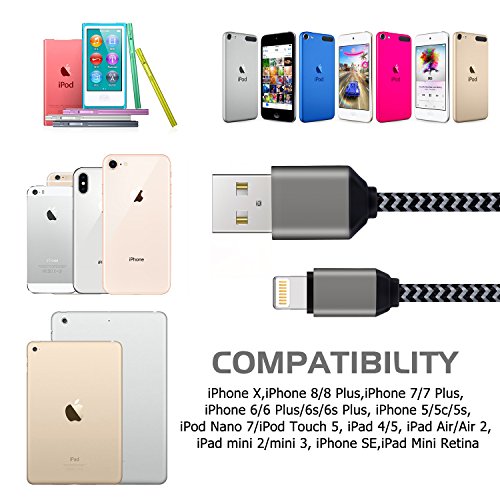 Warranty 12 months risk-free warranty. We will solve all your problems within 24 hours. Atill Durable iPhone Lightning Cable Premium 10ft iPhone Charger Cable Sync and charge with speed Durable nylon braided jacket? Extra length meets different charging needs Complete charge and sync compatibility with iphone X, iphone 8 plus, iphone 8, iPhone 7, iPhone 7 plus, iPhone 6, iPhone 6 plus, iPhone 6s, iPhone 6s plus, iPhone 5, iPhone 5s, iPhone 5c, iPhone SE iPad Pro, iPad Air, iPad Air 2, iPad mini, iPad mini 2, iPad mini 3, iPad mini 4, iPad 4 iPod Touch (5 Gen), iPod Nano 7 Warm Prompts: 1. Please plug the lightning charging cable tenderly while using. 2. Please do not put the lightning cables together with some inflammable and explosive objects.