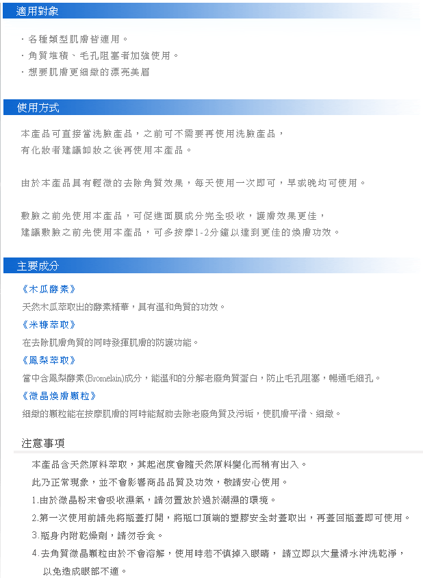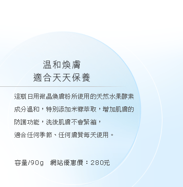 A truly unique rice-based enzyme powders that microfoliates dulling debris and instantly leaves the skin noticeably smoother and finer. Clear & tighten pores gradually.