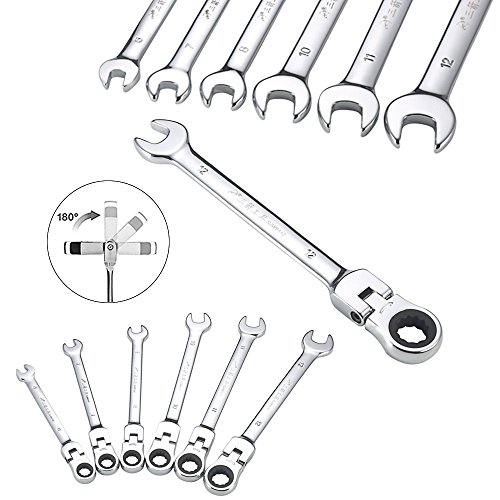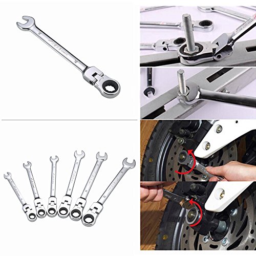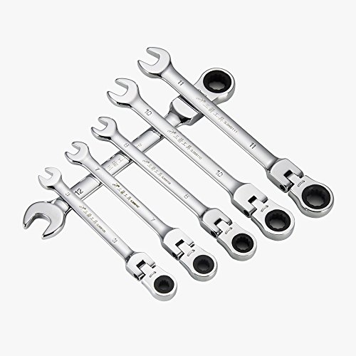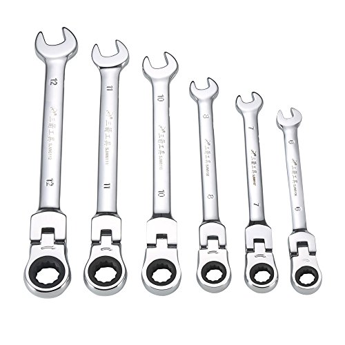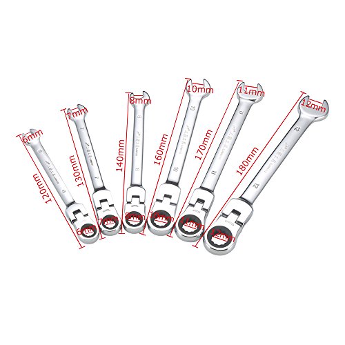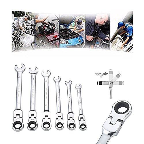 KISENG Flexible Pivoting Head Ratchet Combination Spanner Wrench Garage Metric Tool 6pcs a Set 6mm-12mm