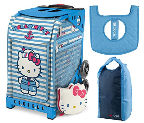 Set sail with Hello Kitty®. You're ready for a day at sea, with plenty of space for everything you need. SPORT BAG AND FRAME 39.5" Telescoping handle Inspired by aerospace technology, the aluminum alloy frame is light, super strong and rated to safely support up to 300 lbs The removable ZÜCA Insert Bag is made from premium water resistant 600D polyester and is hand washable The dual wheel system climbs stairs and curbs with ease Magneto dynamic 4" polyurethane wheels absorb shock and make for a seriously silent ride Gear platform to carry additional load Feet, made of nylon 6, go easy on scratchable surfacesFeature