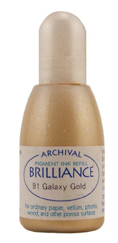 Tsukineko 20 cc Brilliance Pigment Inker, Re-Ink Brilliance Inkpads and Dew Drops, Galaxy Gold