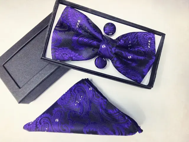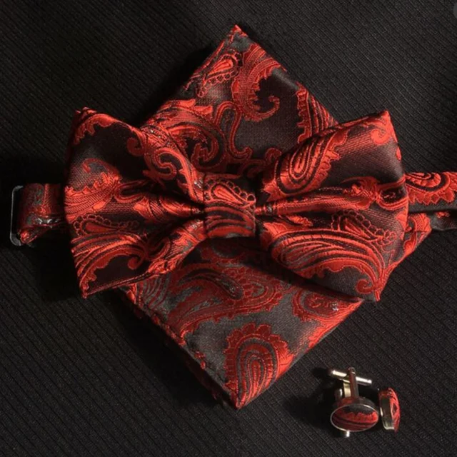 | [해외]SHENNAIWEI 100% 실크 새로운 남성 빈티지 자카드 나비 넥타이 세트 넥타이 손수건 커프스 단추 선물 상자 |