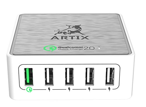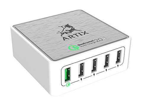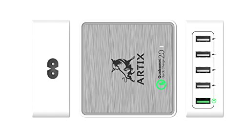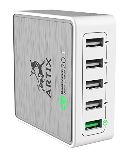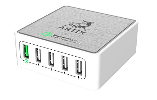 Quick Charge 2.0 5-Port USB Smart Charging Station by Artix NRGPower CS350 | 40W Qualcomm Certified | iSmart Technology with Stand for up to 5 Devices