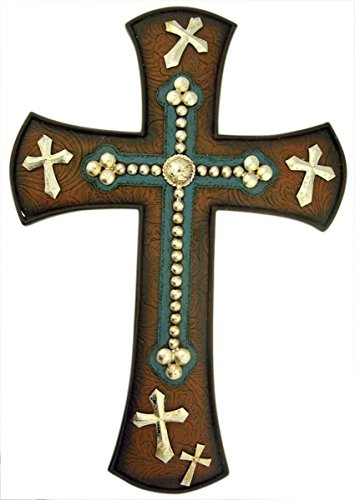 Deleon Silver Tone Cross and Beaded Resin Wall Cross Decoration, 12 Inch